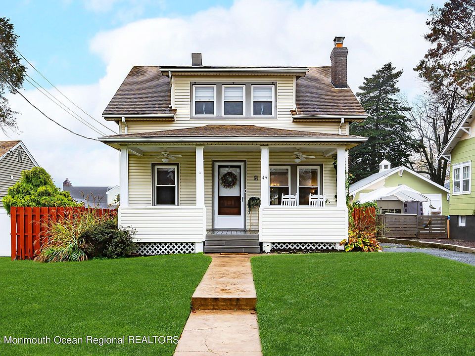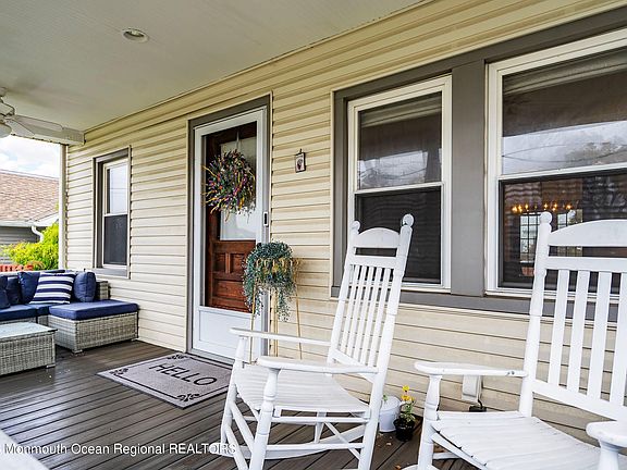 Feel the warm welcome of the rocking chair front porch & be captivated by the charm that radiates from inlaid wood floors, peanut stone fireplace, lattice windows & classic details in the decorative woodwork. Total renovation & thoughtful design of kitchen & bathrooms provide modern conveniences that complement the classic aesthetics of this home. Enjoy remote operated window treatments on the first floor. French doors from the dining room open to reveal a backyard oasis, complete with an in-ground pool. Perfect for a quick dip on a summer day or hosting a poolside barbecue, this area will provide countless enjoyable moments. The full basement & detached garage provide a variety of uses. This home is located near restaurants, ferry service to NYC, shopping & great schools.