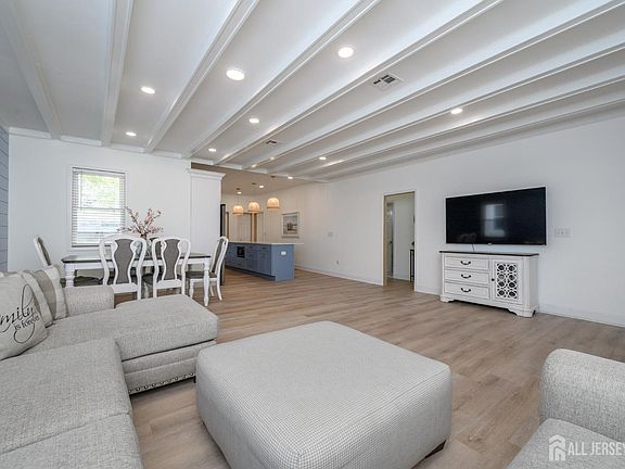 Jersey Shore Living at it's finest! This stunning 3 Bed 2 Bath fully remodeled Ranch with Primary Suite and detached 2 Car Garage is sure to impress! Meticulously maintained in a prime location, just 2 blocks from the Boardwalk and iconic Beaches, it's the perfect blend of modern luxury and shore home charm. Step in to find a spacious and sophisticated interior with newer flooring, recessed lighting, generous room sizes, luxe fixtures, and a cooling modern palette that is easy to customize. Open concept living space makes for seamless living and entertaining, with plenty of natural light all through. Gourmet open eat-in-kitchen offers sleek SS appliances, gorgeous quartz counters, new cabinetry, and a 13-foot quartz counter that is ideal for gathering. Down the hall, the main full bath along with 2 generous bedrooms, inc the Master Suite. MBR boasts two closets and a newly renovated ensuite bath with double sink vanity. Convenient laundry closet, too! Plush, peaceful backyard holds a lovely stone patio and plenty of extra space to build and play. Detached 2 car garage with double wide drive offers ample guest parking. Central air/forced heat, newer electrical, plumbing, roof, insulation, siding, windows, furnace, hwh, central air, flooring, the list goes on! This is an excellent summer getaway or your very own year round retreat. Just pack your bags and move right in!!