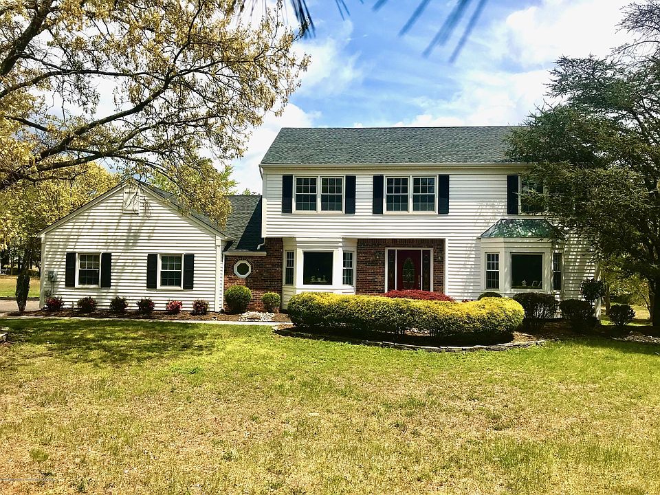 Annual rental just in time to enjoy summer at the Jersey Shore! Lovingly maintained colonial in desirable Holmdel set on a private lot offering 4 bedrooms & 2 1/2 baths. The kitchen has cherry wood cabinetry & a large eat in area with a bay window overlooking the yard with mature trees & deck. Master en-suite & 2 walk in closets! Hardwood flooring in the living & dining room with freshly cleaned carpet in family room and upper level. You will really enjoy the ambiance of the gas fireplace in the family room on winter nights! Plenty of storage in the unfinished basement plus a direct entry two car garage. This is a beautiful home in a great town with great schools! Rentals are scarce so call today for a private showing. Owner may consider a small dog but no cats & no smoking inside