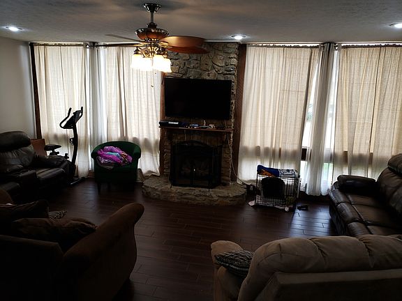 4 bedroom, 2 bath (2nd bathroom has shower stall, no tub) Large den/living area (recently remodeled) with gas insert fireplace Room off of foyer that could be used as an office or small dining room Great size kitchen (appliances can stay) Great closet space/storage areas 1 car attached garage Massive 2 car detached garage (will fit 3 cars because of a paint booth). This garage also has a bathroom (not in current working order) and a full upstairs with LOTS of potential (could possibly even make into an apartment)! House has newer central heat/air and newer gas water heater. House is located in a GREAT NEIGHBORHOOD!!!!!