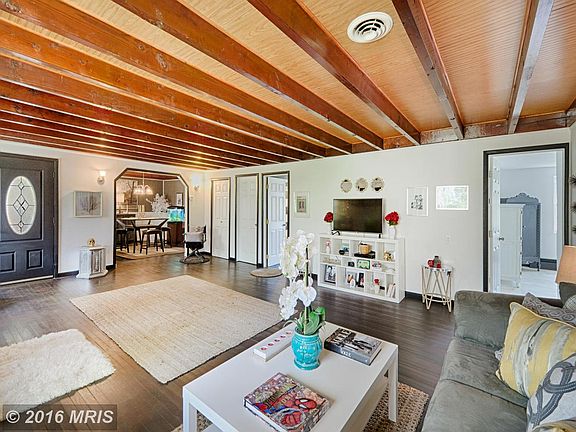 Spectacular Rancher w/ open floor plan. 1.1 acres backing to woods. Over 1800 sq, ft. of living space. 3 large bedrooms. Huge 25x20 living room with beamed ceiling and stone gas fireplace. Beautiful wood floors through out home. Bathrooms remodeled with ceramic tile. Kitchen includes stainless steel appliances. Enclosed 17x10 sunroom. Multiple decks with one 30x14. Four Garage spaces. PRISTINE!!!