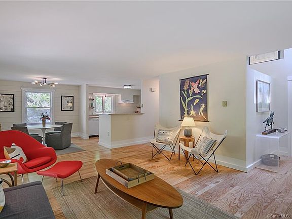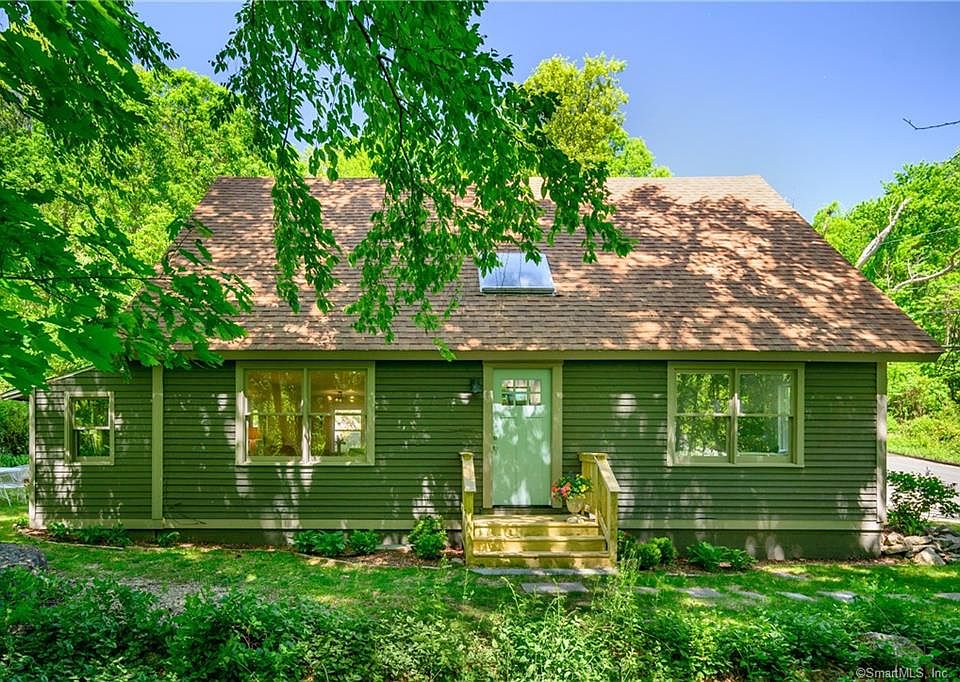This New England Cape with a Scandinavian feel nestled into the Hattertown section of Newtown sits on a quiet country road. A low-maintenance property perfect for easy everyday living, a woodsy weekend retreat, or a great condo alternative! This home has been beautifully updated, including kitchen and bath renovations, new blonde hardwood floors throughout the main level, new carpet in the upper level, new septic tank, new paint inside and out, new front door and decking, upgraded electrical and lighting, and more!! The front entrance opens into a double story hall with a skylight, and to the right is the family room with a sliding barn door. On the other side of the entry is the open concept living room, kitchen, and dining room. Light painted planked walls and gleaming new hardwood floors create a beautiful, clean space. The kitchen and the dining room offer pretty views of the private back yard. A full bath with a tile floor and a laundry room/mud room complete this level. Upstairs is the spacious primary bedroom along with two other bedrooms and a full hall bath with a tile floor. Attic storage space can be accessed from both the primary bedroom and one of the other bedrooms. Outside is a patio area and a level back yard with a seating area. Gorgeous natural rock outcroppings and trees create a serene and private place to enjoy nature. New ridge vents and older section of roof has been replaced. Nothing left to do but move in and enjoy!