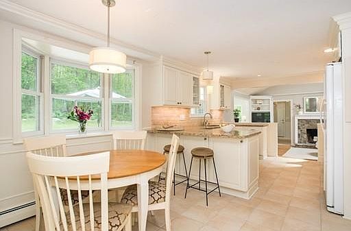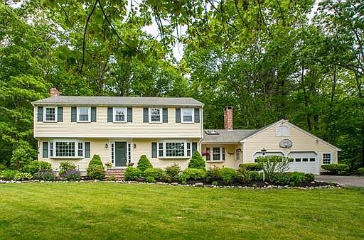 This sun-filled center entrance colonial, in the highly sought after Indian Hill neighborhood, backs onto conservation land. The home offers many upgrades including: hardwood floors throughout, updated kitchen, two renovated bathrooms, newer windows, new 4-season sun room, new mudroom, and new paint throughout. The white eat-in kitchen with granite is the center of the home. Adjacent is the dining room with hardwood, picture molding and a bay window. The front-to-back living room features a fireplace, built-ins and a bay window. The family room has a vaulted ceiling, fireplace, built-ins and a bay window. The sun room offers access to the deck and the private, level backyard through French doors. The powder room is renovated with granite and an updated vanity. There are four bedrooms. The master has a full bath with tiled shower and a walk-in closet. Also upstairs is a renovated hall bath with a tiled tub/shower and a double vanity. The finished basement has a large playroom and office