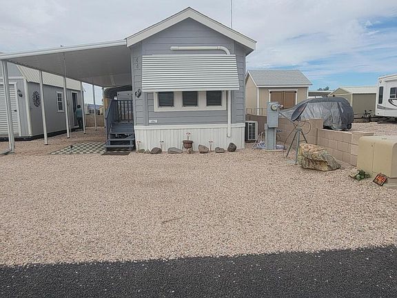 Welcome to desert Living. This one bedroom, one bath, well maintained park model in Quartzsite's only gated community could be yours. This newer model home comes completely furnished, The kitchen has lots of storage space with upgraded drawers and beautiful cabinetry. The bathroom has a full size walk in shower. In the bedroom you will find more storage. Also on the property is a workshop/garage, with electricity, water and a washer/dryer. A perfect place to tinker or to use for additional storage. The sellers will also throw in as a bonus, a 1991 Geo Tracker in good condition. This vehicle has been perfect for exploring our wonderful outdoors and panning for gold. A must see before it's gone!