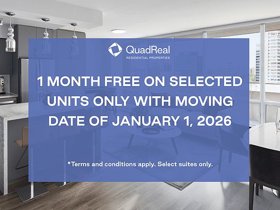 - Special offer! One Month Free on Select Suites! - Receive one month free on select suites for a limited time on a 12-month lease. Pricing and incentives subject to change. Terms and conditions apply.