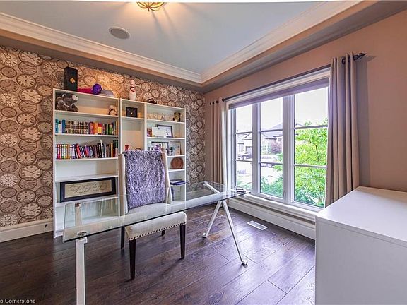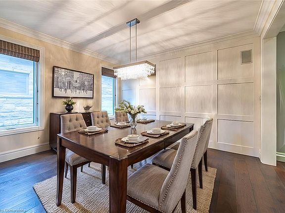 Welcome to the Exquisite 3 Car Tandem Garage Residence with an Inviting Inground Pool! Nestled at 44 Jacob Gingrich Drive in Kitchener, this splendid two-story home, expertly crafted by Klondike, boasts an expansive living area spanning over 5,400 square feet. Inside, you'll be greeted by stunning custom crown molding and elegant wainscoting adorning the interior. The main floor is designed for both functionality and style, featuring a sunlit office/den, a formal dining room, and a magnificent chef's kitchen replete with custom cabinetry, granite countertops, a convenient walk-in pantry, a spacious island with a breakfast bar, and inviting three-panel garden doors leading to the secluded fenced yard. Adjacent to the kitchen, the grand family room impresses with exposed ceiling beams and a striking stone gas fireplace. Completing the main floor is a well-appointed 2-piece bathroom and a generous laundry/mud room. Ascend to the upper level, where you'll discover four generous bedrooms, each equipped with its own walk-in closet. The master suite is a true sanctuary, featuring a stunning 5-piece ensuite with a beautifully tiled stand-up shower, glass door, dual vanities, and an inviting clawfoot tub. Two of the bedrooms are interconnected by a luxurious 5-piece Jack & Jill bathroom, complete with double sinks, while the fourth bedroom enjoys its own private 4-piece ensuite. The fully finished basement adds to the home's allure, offering a fifth bedroom, a spacious recreation room, a versatile den/games area, and a convenient 3-piece bathroom. The backyard is a haven for outdoor entertainment, boasting an expansive interlocking patio, a covered outdoor living space, and inground saltwater pool. Located in the highly sought-after Deer Ridge neighborhood, this home is close the prestigious Deer Ridge Golf Club, and central to all essential amenities. A true masterpiece, this property was the Rotary Dream Home of 2014, offering the epitome of luxurious living.