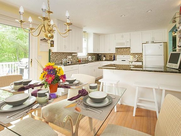 Move in ready! Tastefully appointed updates start at the front foyer with an oval entry door, custom tile work and gorgeous designer railings. Enter the totally new kitchen includes cabinets, granite, glass tile backsplash, center island, new appliances, recessed lights and wood floors and open into the living and dining rooms with slider to deck. You'll enjoy entertaining in the lower level family room brick hearth/wood stove, french doors to the back yard great for the kids to come and go. Also possible 4th bedroom or office, beautiful new bath and a workshop for the handyman. New roof, hot water heater and siding front and back. Come take a look you won't be disappointed!