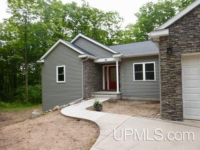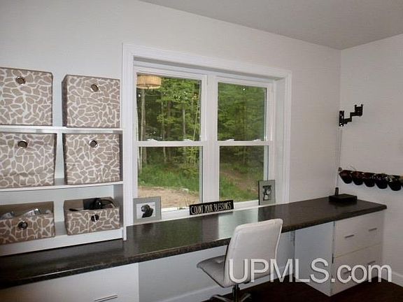 Beautiful home in Negaunee Township. This house is situated on a lovely, wooded five acre parcel on a private road of only six other homes. Conveniently located with a country feel yet within 12-15 minutes of Marquette, five miles to the city of Negaunee and a short ride to Ishpeming. This desirable ranch style home offers many wonderful amenities such as a custom kitchen with slate finish granite counters, custom cabinets with soft close drawers and a deep stainless steel sink. The master suite offers a walk-in closet and master bath with beautiful custom made maple double vanity with granite counters. There is another full bath that is shared between the two additional main floor bedrooms. There is even a main floor office for those who work at home (high speed internet is available as well). You will be comfortable all summer long courtesy of the central air system. The kitchen, dining area and great room offer beautiful and peaceful wooded views from the many large Pella windows. Lower level walk out basement has been completely framed for a full size bath, large conforming fourth bedroom, huge family area, storage area and large utility room. Electrical wiring has been roughed in and plumbing and heating has been completed. Also included is a kitchen area complete with sink drain, water supply and 220 stove plug. This level would make a great second living area. Basement floor was also acid stained. The convenient attached garage is fully insulated and heated and offers both hot and cold water supply. Other amenities include the following: underground dog fence with two collars to keep your pups safe, laundry hookups in main floor laundry area and lower level, laundry chute to lower level, concrete driveway pad, basketball hoops and direct access to groomed snowmobile trail system. See this one before it's gone!