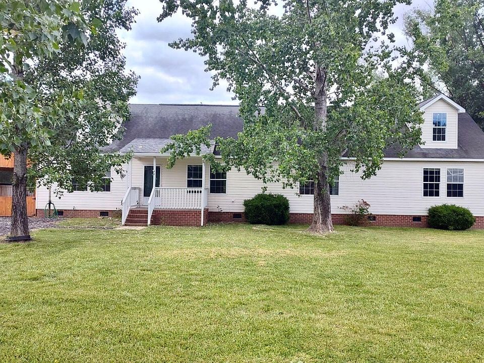 This ranch style home has a lot of potential! 4 spacious bedrooms, 2 baths, open floor plan, with great room with fireplace, kitchen with bar area & eat in area. HUGE unfinished walk in attic, great for additional game room/bedroom. Situated on approximately on 1 acre, fenced yard. LVP Flooring throughout living areas. Covered patio/deck overlooking above ground pool. Detached shed and covered carport offer plenty of space storage. Home SOLD AS IS.