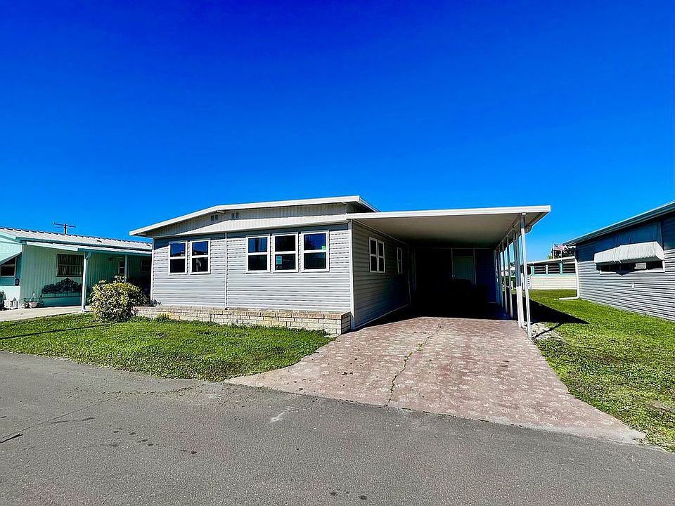 Don't miss this freshly remodeled 2bd, 1bth home in the pet friendly 55+ community of Coach House Mobile Home park in Palmetto FL. This lovely home has been tastefully updated with new subfloors & vinyl plank flooring, new light fixtures, entry doors, & thermal pain windows throughout. The open concept kitchen has new countertops, cabinetry, backsplash, appliances, and a peninsula with bar stool seating. Slight cathedral ceilings in the living room add charm to the expanded living area giving you plenty of space to entertain friends and enjoy your leisure time. In the bathroom you'll find a new vanity, shower surround, commode, and the washer and dryer. This first of 2 bdrms has a closet almost the full length of the room and a lighted nook area perfect for a small desk or make up table. In the second bdrm there's a built-in desk and closet with storage cubbies. There's an attached shed in the carport and enough parking for to vehicles and a golf cart. Just step outside the living room and there's a concrete patio perfect for grilling out and another shed for extra storage. You'll never be bored in Coach House! This is a very active community with fantastic amenities including the gorgeous pool lined by tiki huts & tables, super size clubhouse for tons of activities, state of the art fitness center, library, wood shop, shuffleboard courts, new pickle ball courts, new put putt golf course, new doggie run, stocked lakes for fishing, beautiful landscaping, and more. Lot rent for this home is $945.76 per month and includes water, sewer, trash, recycling, lawn care, amenities, and a Spectrum platinum internet/cable package worth $260 per month. Call today and begin your Florida dream today! All listing information is deemed reliable but not guaranteed and should be independently verified through personal inspection by appropriate professionals. Integrity Mobile Home Sales cannot guarantee or warrant the accuracy of this information, measurements, or condition of any property. Measurements are approximate. Lot rent is subject to change.