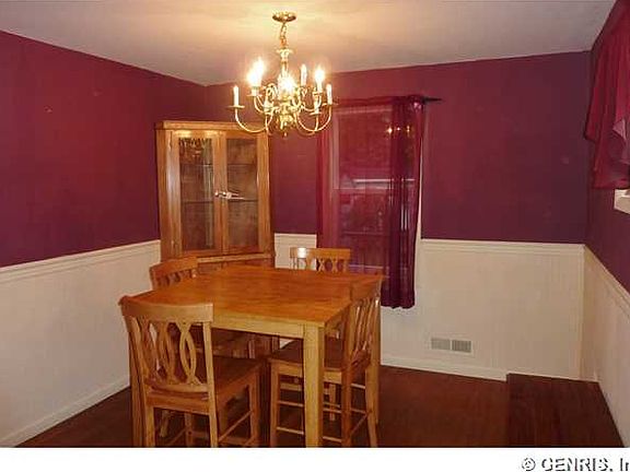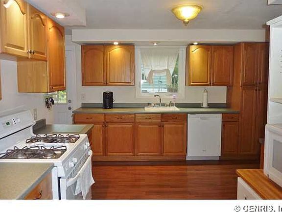 LOTS OF UPDATES in this 3 bedroom cape cod in Chili! Living room wood gas fireplace and Formal Dining Room with hardwood floors. Remodeled Kitchen with oak cabinetry, Formica countertops and all appliances included! 3 nice sized bedrooms and great attic space! Newer windows throughout! Furnace & central air - 2007. Vinyl sided with new ridge vent & soffits. Enjoy the deck and private fully fenced yard with shed! Quiet cul de sac street - close to shopping, restaurants, expressway, etc. WONDERFUL VALUE!