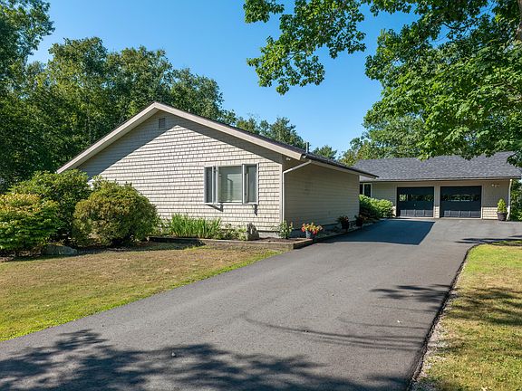 In-town Mid-century modern. The home lends itself to one floor living. Front entry hall leads to a large sunken living room with fireplace, and deck. Well appointed, updated eat-in kitchen with deck that overlooks the back yard. Separate formal dining room. Primary bedroom has private bath, and a walk-in closet with washer and dryer. Second bedroom, second bath, and third bedroom / office also on the main floor. Guest suite / In-law apartment with bedroom, bath, kitchen, laundry, and patio in daylight basement. Main level attached two car garage, private back yard. Around the corner from Witherle Woods, the 193 acre nature preserve with walking trails. A half mile from the lighthouse. A mile from the center of the village, dock, restaurants, and shops. Close to both Golf club and Yacht clubs.