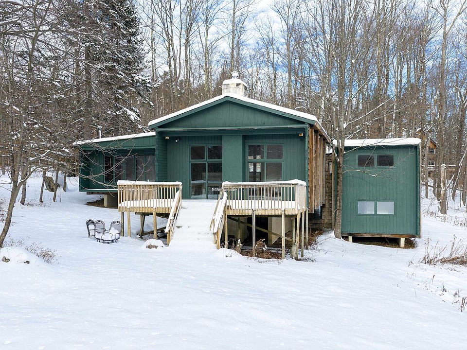 Nestled in the woods on a generous private lot, 44 Lake Road is a contemporary Vermont retreat offering peaceful seclusion with big-sky views of Stratton Mountain. Designed to blend with its natural surroundings, this home features warm wood accents, soaring ceilings, and walls of glass that bring the outdoors in. The open main living area is ideal for apres-ski gatherings, with a spacious great room, wood-burning fireplace, and sliders that open to an expansive deck overlooking the forest and mountain vistas. Multiple levels provide excellent separation of space with comfortable bedrooms, a lofted flex area, and bonus rooms perfect for guests, recreation, or work-from-home needs. Outside, enjoy the quiet of the trees, the serenity of your private setting, and easy access to everything that makes this area special. Located just minutes to Stratton Mountain Resort, skiing, snowboarding, golf, dining, and the shops of Manchester and Londonderry, this is an ideal getaway or year-round home base in the heart of southern Vermont. Keep all your toys in the 14 x 17 Barn