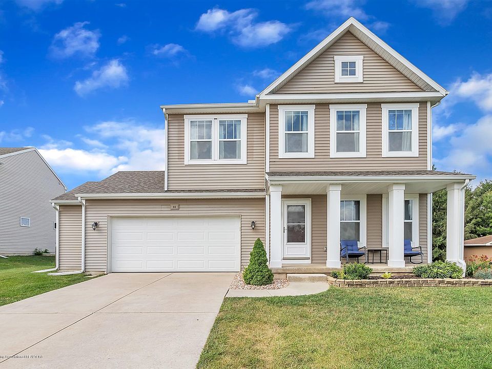 Welcome to 44 Lake Ridge Drive!!! This beautifully loved 5 bedroom, 3.5 bathroom two story home is located in the ideal subdivision of Columbia Lake in the Mason school district. Enjoy the country setting from your back porch and also being so close to the highway access and all your daily needs! As you enter through the front door, you are welcomed into the light and bright, open concept theme! The newly installed laminate floors carry through the first floor. Off the entrance is a perfect in-home office/workspace or playroom with French doors. The kitchen features lots of cabinets for your storage needs, granite countertops, stainless steel appliances (that stay with the home), an eat at island and a glass door accessing the newly installed trex deck and fully fenced in backyard! Perfect for entertaining guests! The dining room is adjacent to the kitchen with plenty of lighting through the large windows overlooking the backyard! Rounding out the rest of this floor is a half bathroom and attached 2+ car garage, with a bump out for storage. The second story features the oversized master bedroom suite with dual sink vanity, walk in-closet and linen closet! The remainder of this floor features three additional large bedrooms, two with walk-in closets), the laundry room, a full bathroom with dual sink vanity and a large landing space!! Heading to the finished lower level boasts a large rec room with laminate flooring and a bar, lots of daylight windows, a fifth bedroom and a full bathroom! This home is move-in ready and is waiting for you! Call today to schedule your private showing.