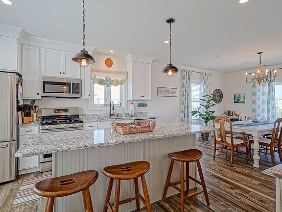 Gorgeous NEW waterfront home with amazing sunset views! Completed in 2018, this home has the perfect set up for entertaining with 9' ceilings on the main level. Beautiful kitchen with stainless appliances, a large island for additional seating and dining area opens up to the living room featuring a gas fireplace set in stone. The large deck includes a gas hookup for grilling while taking in those spectacular sunsets. 50 feet of water frontage, storage shed, manicured flower beds, and plenty of space for sitting around the fire completes the yard. 3 beds, 2 ~ baths, including the master with large walk-in closet, double vanity, and tastefully tiled stall shower. Don't delay - make an appointment to see this beautiful shore house TODAY!!