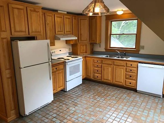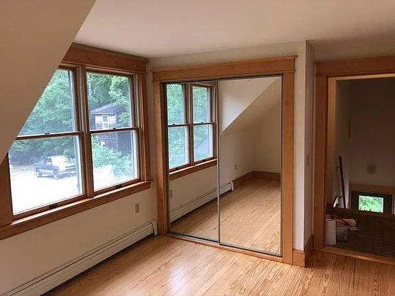 Year round lake living with proximity to sunday river skiing and white mountain recreation opportunities. Enjoy watching loons and eagles from the private dock and lakeside fire pit or take a swim on the sandy north end of Lake Christopher. Second floor apt in newly renovated duplex is super clean with new appliances, paint and floor finish. Apt has a private entry, two bedrooms, full bath, eat in kitchen, sun room, washer dryer hook-ups and lots of closet space. Abundant light and air fill rooms from large windows and skylights. Lofty views of lake and gardens from both bedrooms Craftsman details abound: hardwood floors, stair, trim, custom cabinetry and tile kitchen/bath floors. Ready for immediate occupancy. Tenant pays electricity and shares cost of heat and hot water with downstairs tenant. Private lake access, driveway and yard maintenance is also shared with downstairs tenant.