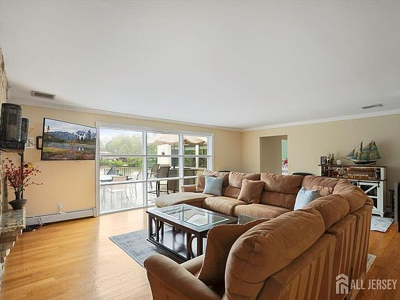 Welcome Home to this stunning large ranch on a serene private Lakefront property! Quiet and peaceful, yet conveniently close to shopping, highways and Edison train station. This home includes spacious rooms with gleaming hardwood floors and natural light that beams through expansive windows over-looking the tranquil lake. Each bedroom features 2 closets with the main bedroom featuring 2 walk-in closets along with a brand-new bathroom. The impressive 2 tier deck highlights the large yard for entertaining or relaxing. The full, walkout basement features a study/office along with a large rec room and its own fireplace. The full bathroom in the basement leads to the 3rd garage that is accessible from the backyard making it great to house your yard and lake items. With new bathrooms, a new roof and a newer boiler system, all you need to do is move in and enjoy the lake. This unique house needs to be seen to truly do it justice.