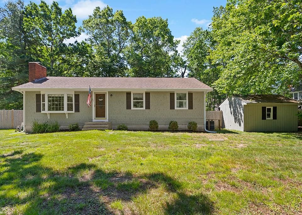 Wait til you see this one! Nestled in a quiet neighborhood just minutes from Rts 95/495, Mansfield Crossing shops, restaurants, and more, a beautiful, green corner lot awaits - complete with fenced-in backyard, storage shed, and even horseshoe pits. This 3-bed, 1 bath ranch is turnkey, perfect as a starter home or for those looking to downsize, lovingly composed with impeccable charm and attention to detail. Featuring a large, updated kitchen open to living room with painted brick fireplace and herringbone feature wall, hardwood floors throughout the main level, and large full hall bath with second door to Master bedroom. Basement is 75% finished with terrific space for entertaining, including full bar, workshop area, laundry, home gym space, and bonus room. Nest thermostats, Central air, and recessed lights throughout. New oil tank in 2017, water heater in 2018; brand new gutters and exterior paint in 2020. Exclusive showings only; attached COVID form must be signed prior to entry.