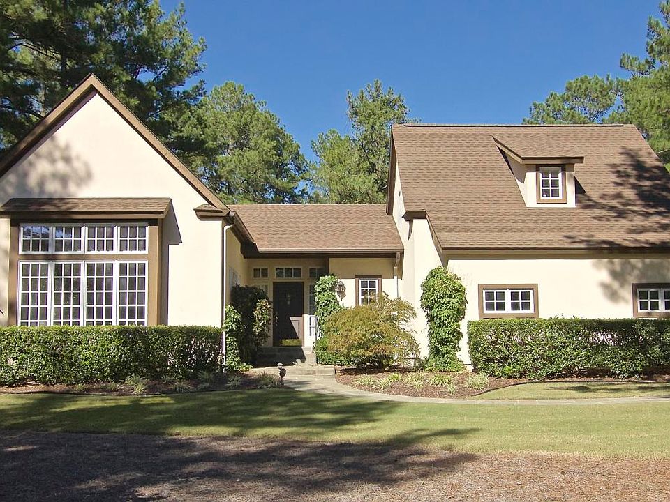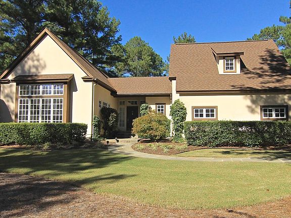 Charming and inviting custom built ''cottage'' Floor to ceiling windows, cozy fireplace and an a large island in the kitchen. Flagstone patio with water fountain. Situated on .8 acre this home is in a gated community. Large master suite with super sized walk in closet. 3rd bedroom has custom built ins for an office. Bonus room was used as art studio. Close to the village, shopping, schools and an easy commute to Ft Bragg