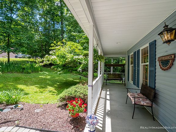 Lovely well-maintained home ideally located on cull de sac street. Feature include open kitchen and family room which compliments the formal living room, dining room and office. Vaulted ceiling lead upstairs to master suite and 3 additional bedrooms with walk in closets. A huge finished basement with walk out to a fenced yard. Th charming wrap around porch is perfect to enjoy the tranquil wooded setting on 1.38 acres. 3 car attached garage plus a bonus two garage and workshop, which has radiant heat. . These are just a few things you will love about this home.