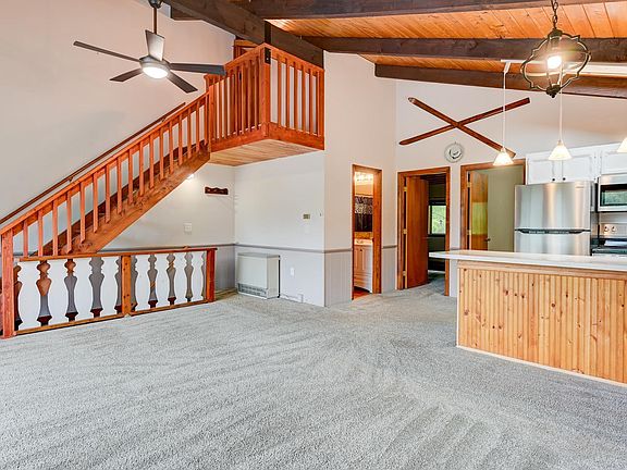 Come and see this bright, upper level end-unit. Inside, the main living space is kept bright and open with plenty of large windows, double sliding doors out to the deck, and a bonus skylight in the well-equipped kitchen! Brand new stainless appliances in August 2023. Off the kitchen are the two nicely-sized bedrooms, each with closet space, as well as the full bathroom. Up the stairs in the living room is the loft space and half bathroom, which can be used as a kid’s hangout area or even a home office. There is an optional on-site pool, tennis, and golf membership available at Linderhof Country Club. Located right across from Storyland and the Living Shores Aquarium, under ten minutes to Attitash Mountain, and just 15 to Cranmore Mountain and the shops and restaurants of North Conway Village.