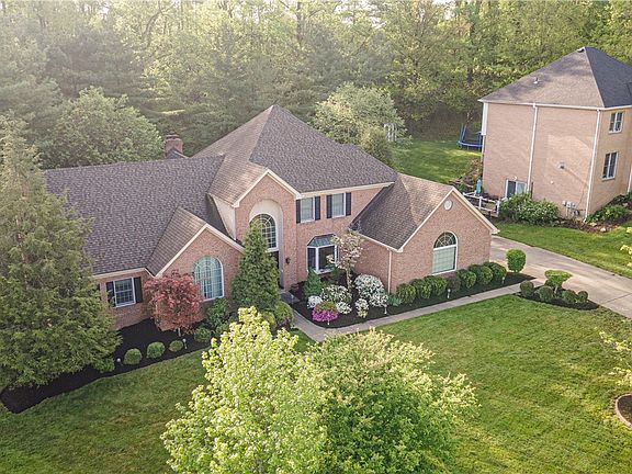 Nestled in the heart of Peter’s Township, this stunning home offers unmatched convenience to schools, shopping, dining, and major interstates. Step into a grand open foyer with a rear staircase leading to a gourmet kitchen featuring granite countertops, stainless appliances, glass backsplash, center island, and a private breakfast nook. The formal dining room impresses with crown molding, chair rail, and wainscoting. A soaring two-story family room boasts double-stacked windows and a floor-to-ceiling brick gas fireplace. Enjoy the cozy three-seasons room and main-level laundry with two powder rooms. The first-floor primary suite includes a luxurious jetted tub, dual vanity, and custom walk-in closet. Upstairs are two bedrooms with a Jack-and-Jill bath and a third with a private bath. 2359 sq ft in the basement awaits your imagination! The finished game room includes a pool table, access to the yard, and a full bath. Ample storage or future expansion space completes this gem of a home.