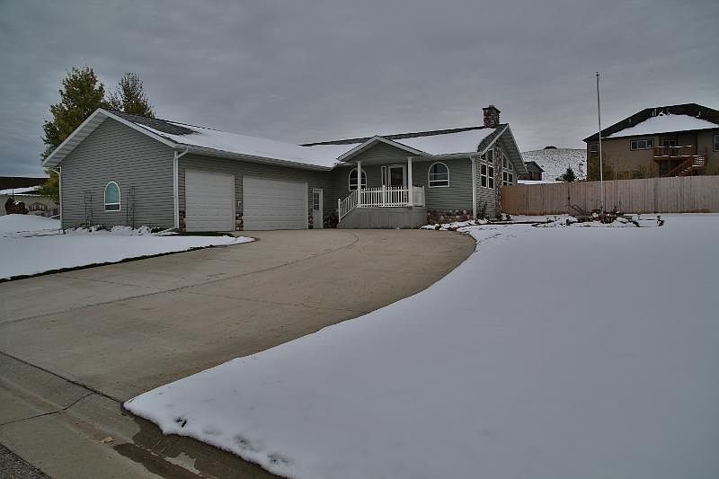 Motivated sellers due to job re-location! Darling home at the foot of the Big Horn Mts. Main level offers new, high end carpeting, living room with gas fireplace & views of Mts. Kitchen with island & deck. Sound System set-up is in kitchen & is set with zones, including outside. Master bedroom has walk-in closet & bathroom with jet tub. Also has french doors that lead to deck. Basement boasts 3 spacious bedrooms & a large utility room with tons of storage. The den has a wet bar, projector & screen ~ perfect for entertaining! Heated 3 car garage with newer pellet stove, lovely fenced yard with automatic sprinkler systems.