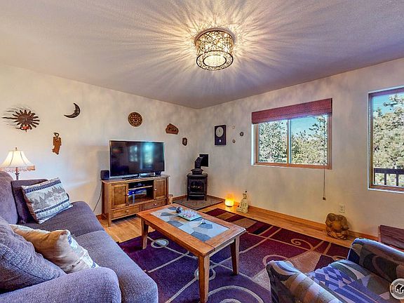 Clean, well kept, ready to move in home on 1 acre w/great mountain views...snow capped view from patio. Private location, back yard dog run, concrete driveway. Wood floors, 4 bedrooms or 3 bedrooms & an office. All appliances included. Basement is 2 car garage. In-floor radiant heat on main & upper levels. Crown boiler! Good producing well w/cistern. Lovely front deck to enjoy the views. 15 minutes to Estes Park, 45 minutes to Boulder, 1 hr to DIA and Denver.