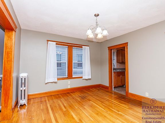 Sunny sparkling clean 1st floor apartment on tree-lined side street in East Arlington! Hardwood flooring, newer windows, gas heat & cooking, and a front and back porch make this apartment special! In the basement there is a washer/ gas dryer for your exclusive use plus lots of room for storage. The fully applianced kitchen has recessed lighting and plenty of cabinets. The dining room with built-in china cabinet, is open to the living room. The location can't be beat: close to Magnolia Field, Minuteman Bike Path and Mass Ave restaurants and bus line. Alewife T Station is a 15 min walk according to Google! Tenant responsible for 1/2m fee to their agent. What are you waiting for? This should be your new home! No smoking allowed, good credit a must, tenants to pay heat, hot water, electricity and internet services. Water Sewer bill to be split 50-50. Parking is on street.