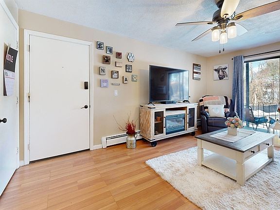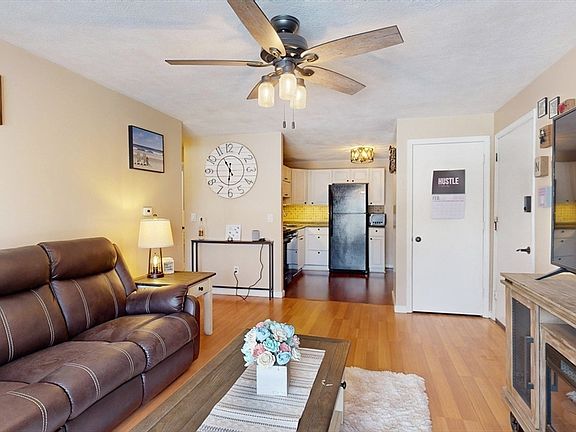 Second floor corner unit in the rear of charming Park Colony Condominium complex. 2 Bedroom, 1 bathroom Condo unit with laminate hardwood floors throughout, kitchen with updated cabinetry, and fully updated bathroom featuring tile shower, granite vanity, tile floors and Bluetooth overhead light/speaker. Bright and sunny unit overlooking the common green space with a private balcony through slider off living area. Convenient location right of Main St (Rt 28) but in the rear of the complex providing privacy. Ample parking and professionally maintained landscaping, grounds and inground pool. Pet Friendly building with in building laundry facilities. Association fees includes heat /hot water/gas! Separate building with additional storage units and bike shed. Enjoy summers by the outdoor pool, grilling in the common green space and all Park Colony has to offer.