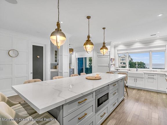 Unbelievable Ocean views from multiple balconies & levels! Just steps to the Long Branch beach & boardwalk and a short stroll to Pier Village restaurants, shops, & entertainment. This expansive fully furnished home offers 4 beds, 3.5 baths, 1 car garage, & an elevator! 4th floor finished attic with additional beds & deck with impressive water views! Designed & built using the highest standards. Exquisite Kitchen with large marble center island with seating for 8! High end interior trim package, front facade stone accents, hardwood floors in living areas & more. 4 beach badges and 2 additional permitted street parking spots included! This home is sure to please! Don't miss this one!