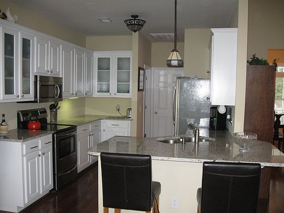 - RoomKitchenFeatures: Granite Counters, Eat-in Kitchen, Floors-Hardwood, Bar, Backsplash-Tiled, Cabinets-Painted