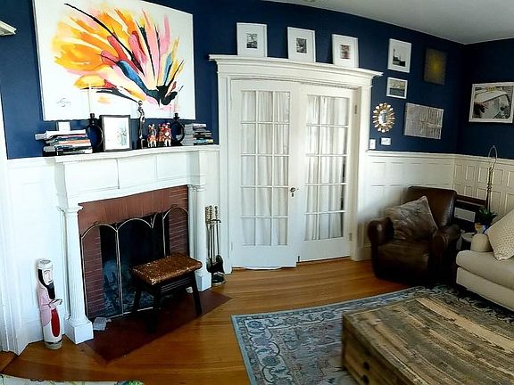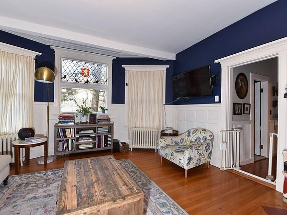 Beautiful, sunny and spacious (1200 sq. ft.) first floor apartment in owner occupied two-family Victorian. Living room w/wainscoting has a working fireplace and stained glass window. Main bedroom has French doors leading to living room. Other features include a second bedroom w/windows towards wooded area, small sunny office space, a sunny and spacious EIK, bathroom w/tub & shower, side yard, washer & Dryer in basement and gas heat. Quiet residential street w/plenty of street parking space. Utilities are not included. No smoking. Cats ok.Group showing on Saturday May 21 at 3 PM.
