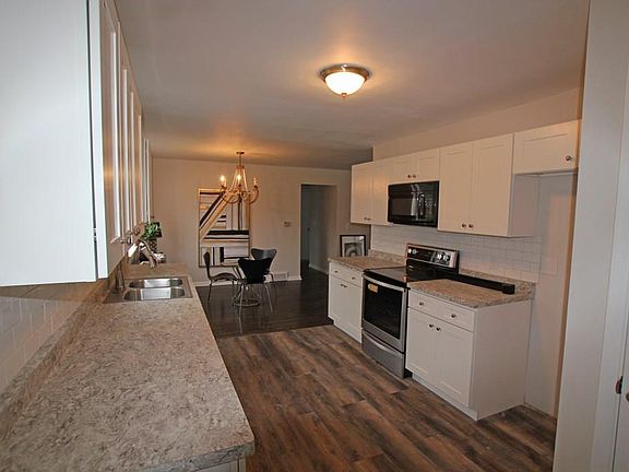Vinyl sided with many new replacement windows. This home has a new beautiful white kitchen with quartz counter tops, soft closings doors and drawers, and dovetail joints! The 2 full remodeled bathrooms have new vanities with granite, new light fixtures, and new ceramic tile! Gleaming laminate floors, open spacious layout, living room with fireplace, roof covered patio deck in backyard, and hard to find attached garage!