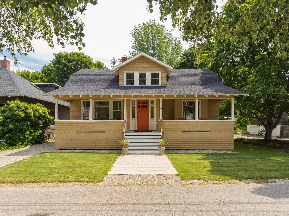 The Front Porch of Your Dreams! This Stunning 3 bedroom, 2.5 bath Bungalow has been completely renovated throughout while retaining all of the 1920's charm of original hardwood floors and craftsman moldings and windows. Enjoy open concept living spaces with a bright new kitchen featuring a Viking dual fuel range and all stainless steel appliances, family and dining room, with formal living room and fireplace. Master en suite full bath with generous walk-in closet. Sunny sitting areas abound upstairs and down. Mahogany backyard deck and generous backyard space with plans available for replacing existing garage structure with a new garage. (New garage included in price) Renovation updates include spray foam insulation, complete rewire and re-plumb, and an HE gas boiler. This Turn-Key home is located in the Little Harbour School District and is just just steps to downtown Portsmouth! Bring your porch swing and enjoy all the comforts of this well-appointed home!