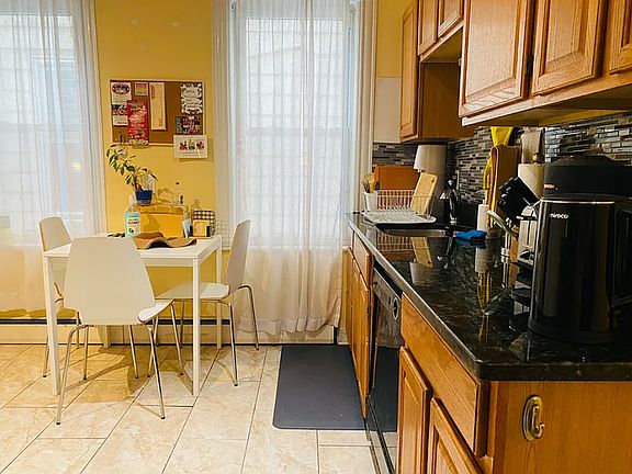 This spacious unit boasts hardwood floors, high ceilings, a spacious living room with large windows that allow in an abundance of natural light. The updated eat in kitchen has granite counter tops, plenty of cabinets and is fully equipped with stainless steel appliances including a gas range and dishwasher. Additionally there are 3 good sized bedrooms, one is slightly smaller than the others, one doesn't have a closet and the third has the access to the private covered porch No pets Laundry in building Street parking Located just steps to Andrew Sq and close to many shops, markets, restaurants parks and more Available as of 8/1 Water/sewer included No pets First, last, broker fee