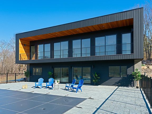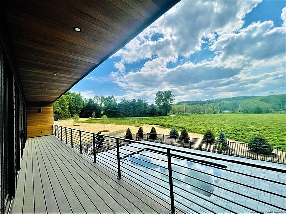 Discover luxury living in this stunning modern house, featuring clean architectural lines, open floor plan and an abundance of natural light. Sitting on 6 acres, this home boasts 3 bedrooms, 3 full bathrooms, an office, a gym, an additional room, enormous family room & an inground salt water pool. Massive island in the gourmet kitchen which includes a wine fridge, pantry, top of the line appliances & multiple sliders leading to an expansive deck overlooking the wild flower meadow and seasonal mountain views. Hardwood floors through out the main level & modern gas stove in the living room. Master suite with his & her walk-in closets, spa-like master bathroom (large soaking tub, walk-in shower & automatic toilet/bidet). Plenty of storage throughout the entire home with California closets. Lower level boasts concrete radiant flooring & sliders, opening to the patio surrounding the salt-water pool. Innovative design provides spacious and functional living in sought after Stone Ridge, just minutes to Woodstock, Kingston & all the Catskills have to offer.