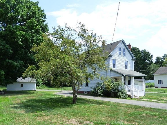 Great opportunity to own a classic large updated home on almost an acre with large 2 car garage. Lots of updates including windows, doors, flooring, and more. Large kitchen with big eat in area and laundry closet. All the appliances stay, refrigerator, stove, and new dishwasher. Full bathroom on this level with new laminate flooring. Beautiful gleaming hardwood floors in the large dining room and living room make them bright and inviting. Upstairs are three large bedrooms with newer carpet, all have ceiling fans and tall ceilings. The full bathroom has a tub and new laminate flooring. Walk up access to the attic. Basement is large with hatchway access. Heating system has had recent duct cleaning and is a Thermopride oil furnace with a new chimney liner, hot water heater is 6 months old and is natural gas, electrical has been updated to circuit breakers and house is served by Town of Wilbraham water and Town of Ludlow sewer. Property being resurveyed and to be 40,031 sqft(.92acres)