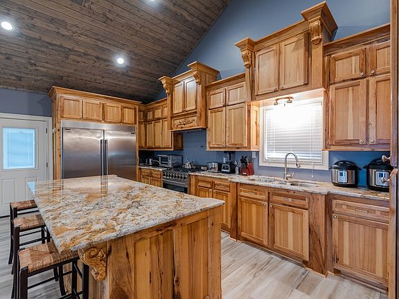 outstanding construction with 20' ceilings in LR;;DR; Kitchen with best brand appliances, security system and "all Smart home" devices. This would be outstanding camp or "man cave" . Also great recreation center, church, etc. multiple usues with outstanding quality construction features
