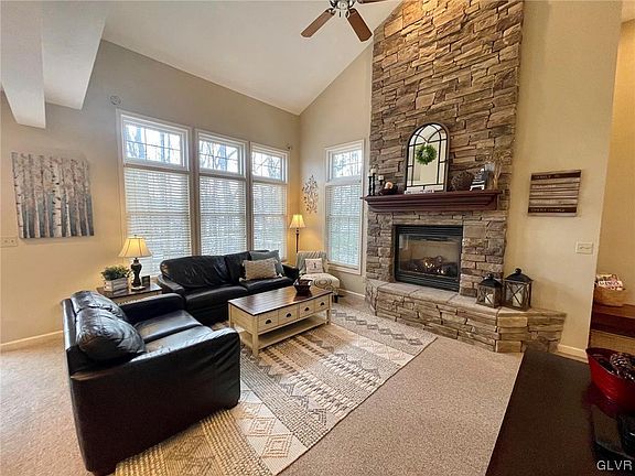 PRICE REDUCTION!!! Beautiful, move-in ready, 3-story desirable End Unit Laurelwoods Townhome awaits new owners to start enjoying the "lake life"! 5BR/3.5 Bath +loft area w/dedicated desk, and sleeping space, custom floor-to-ceiling stone gas FP, vaulted ceilings, granite counters, S/S appliances, fully finished walk-out lower level w/ bar/rec room with full-sized S/S fridge/family room/laundry rm,and tons of extra storage, make this the IDEAL vacation get-away or STR investment! (ABNB friendly-TWP allows short term rentals up to 14ppl, annual income ranging from $90K-$100K according to AirDNA) Nestled between Big Boulder Ski Resort (~.5 mi-can see views of the slopes) & the membership-only, Boulder Lake Club (~1 mi) you can enjoy 4-seasons of FUN! HOA inclds: water, sewer, garbage, landscaping, snow removal (up to front door!), cable/internet bundle & tennis courts! Ownership allows you to join the exclusive Boulder Lake Club, for an add'l fee, w/access to the outdoor, heated pool (overlooking the lake), private beach (for swimming & lounging), sport courts, fishing, boating, water sports & more-A MUST SEE! Sold FULLY FURNISHED, so you can start enjoying the lake-life, immediately!