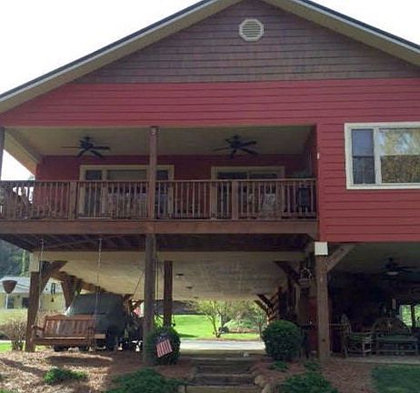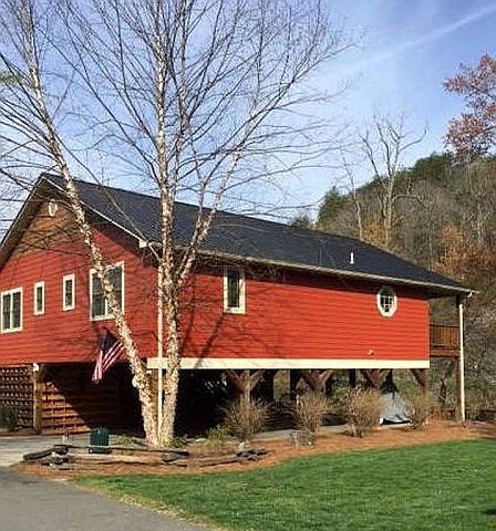 This is the house everyone wants! Built on stilts for a fantastic view of the river in Cullowhee. You can walk to campus or restaurants. Private drive. Enjoy the deck on the edge of the river. Watch the paddlers and fishermen or put in your own tube and float. The house is immaculate and beautifully finished, hardwood floors, concrete counter, custom spa bathroom, vaulted T&G ceilings, porch over looking deck & river, room for cars and more under the house plus huge storage room, metal roof Also includes DB/Pg 1938/277