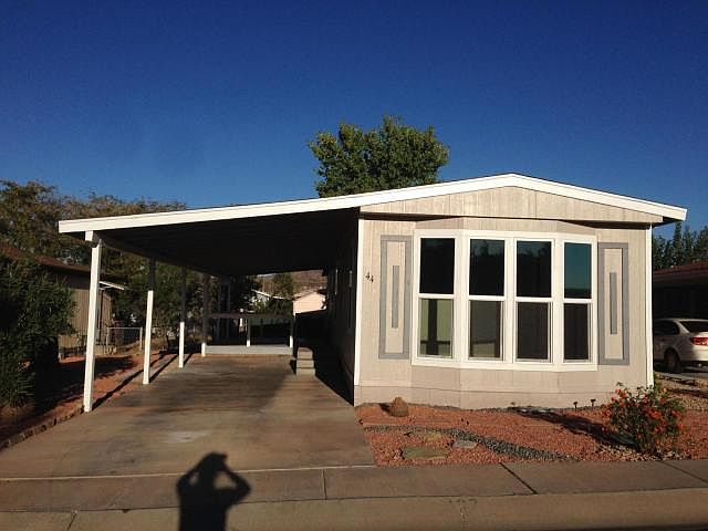 Newly renovated interior and exterior! The Lava Bluff 55+ community is surrounded by golf courses, shopping, lakes and national parks! HOA is $40 per month. New improvements include new windows, plumbing fixtures, swamp cooler, textured walls/ceiling, electrical, water heater, R.O. system, appliances, cabinets, flooring, window coverings and so much more! New Lifetime shed stays with the property