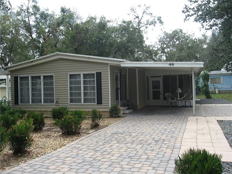PRICE REDUCED!!! Don't miss out on this lovely updated cottage feel home. Start with a paver driveway, and curbing around the planting areas. A carport to protect your car, enter into the glassed in Lanai where you can enjoy your mornings with coffee or evenings to relax with friends. You enter the laundry area from the Lanai and thru the laundry area is the golf cart garage which has a side entrance with over head door. The kitchen has been updated with newer cabinets and appliances, a large stainless steel frig and stainless sink, water filter system, updated light fixtures are an added touch. Enjoy the light colors and the front Florida room that has windows across the front for viewing out. Six panel doors throughout, vinyl siding, roof over, walk-in closets and separate pantry. The master bath has a step in shower. Off the Florida room, step out onto your private Pergola and enjoy the lovely sunshine, grill and relax. This home comes with a Resident Owner Certificate and is also fully furnished. Call today for your private showing.