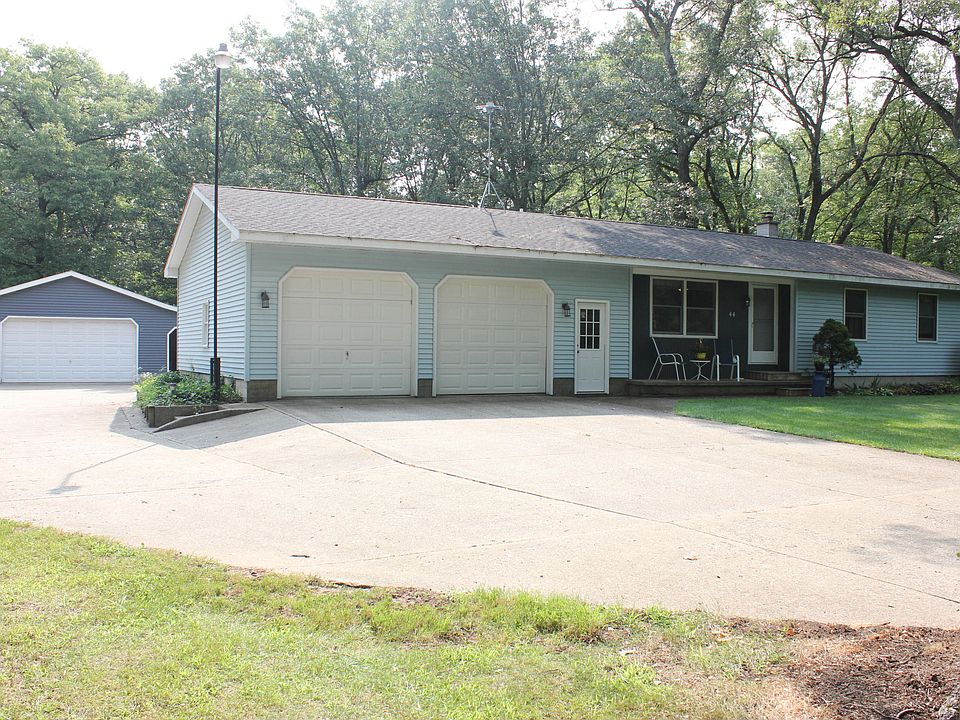 44 N Walker Rd. is a one owner ranch style home. This home features nearly 1,200 sq feet above grade, 3 bedrooms 1 1/2 baths (the 1/2 bath has plenty of space to turn it into a full bath), main floor laundry, new flooring throughout, a large kitchen with quartz countertops and stainless steel appliances. Also there is a full basement with potential to add extra finished living space. The roof, furnace and water heater are all 5 years old or less. Outside you will enjoy the attached 2 car garage and a large detached pull through garage/workshop with power and a lean-to for extra covered storage, separate well for irrigation, additional storage shed and it sits on nearly 1 acre of land. Call today for more info or a private showing. Buyer and buyers agent to verify all information.