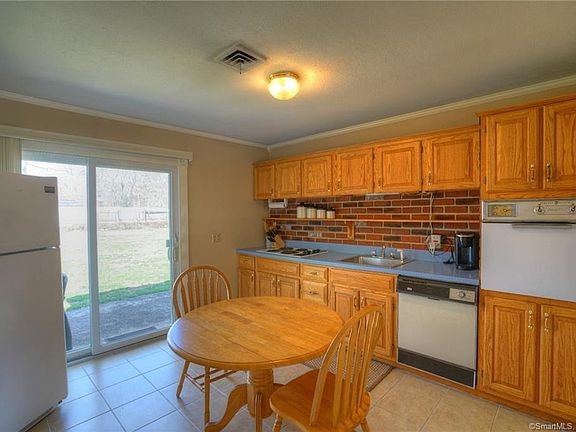 Lovely Mystic Ranch has 3 bedrooms on 0.28 acres with breezeway connecting the 2 car garage! Home features an eat-in kitchen with a favorable pass-through-server window and slider that leads to the outdoor patio. Relax in the cozy living room with attractive hardwoods and picture window and enjoy the convenience of main level bedrooms. This well maintained Ranch has central air and is situated on a level lot in a nice subdivision. Home includes a large well-built country style shed for extra storage.
