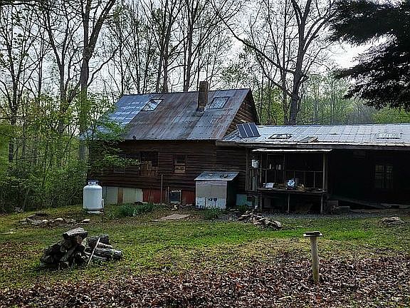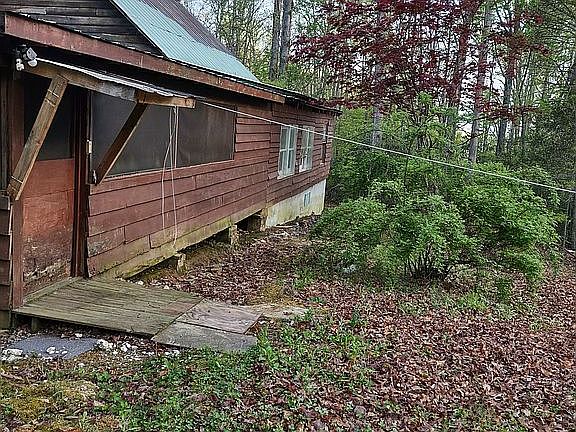 Close to Lake Chatuge! Unrestricted land with 3 driveways, power, 3 bedroom septic tank, spring on property with 2 small creeks. Nice laying land with lots of possibilities. There is a new graded and graveled driveway to the left of the structure, large enough for a motorhome, boat or camper. Use part of the property and rent out the rest. The sellers used the home as a temporary summer camp spot. Property being sold as is.