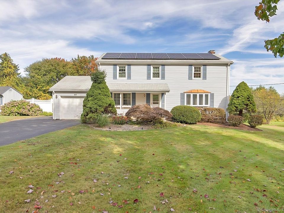 Breathtaking views from this 4 bedroom, 2 1/2 bath colonial with inground pool! Lovely country home has a kitchen that has been remodeled just 3 years ago with white cabinets, quartz counters and appliances. There is a door from the kitchen that accesses the side and backyard as well as the garage. Two large living spaces as well. The living room is at the front of the house and a family room is at the back of the house with a coal stove and french door out to the backyard. A separate dining room is adjacent to the kitchen, and a half bath is on this level as well. Upstairs are 4 spacious bedrooms all with hardwood flooring. The primary bedroom includes a full remodeled bath with stand up shower. There is a shared full bathroom with tub/shower in the hallway. Outside you will find a well maintained inground pool, a shed and a spacious yard. The lower level houses a newer Buderus boiler (2021), newer well pressure tank and newer well treatment system. Replacement windows, newer roof with solar, newer septic, updated 200 amp electrical service. Make this house your home!