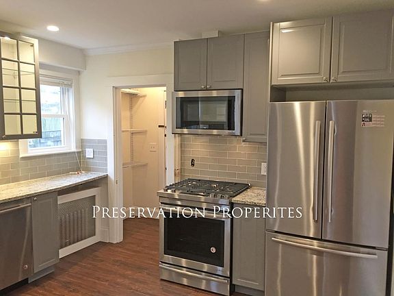 Charming apartment in the heart of Oak Square. NEW GRANITE KITCHEN & NEW BATH WITH 5' X 3' FRAMELESS GLASS SHOWER ON THE WAY. Large, usable foyer with fluted columns, nice hwds & large front porch & rear porch overlooking back yard with crushed stone BBQ grilling zone. Sunny LR, formal DR with natural woodwork & nice china hutch. All rooms newly painted with new ceilings & recessed lights. Both BRs have large closets w custom & adjustable interior. Newer bsmt w/d included. Programmable thermostat & replacement windows to keep heat bills low. Excellent Credit and references required. no parking. only street parking with no restriction.