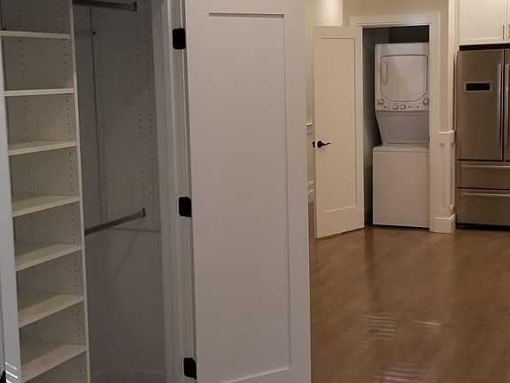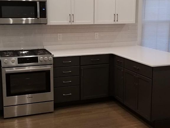 Unit features a living room and modern kitchen with granite countertops and stainless steel appliances. Gleaming hardwood floors throughout. Private washer/dryer in the unit. Back porch. Central A/C.