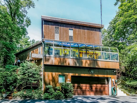 This unique Beech Hill residence offers complete privacy in a California contemporary style home. Nature surrounds you on nearly half an acre of property. A beautiful swimming pool is the focal point of the house. The view can be seen and accessed from multiple sliding glass doors. The first floor is complete with a step down living room, sun room, formal dining room with built in cabinets, family room, kitchen and 3rd bedroom. The sleek kitchen has stainless steel appliances. An open spiral staircase leads you to two bedrooms with tremendous closet space. The master bedroom enjoys a balcony over looking the serene pool setting. Both bathrooms were recently updated. This stylish house is a short walk to Scarsdale village and train. Low taxes and transferable warranty on appliances.